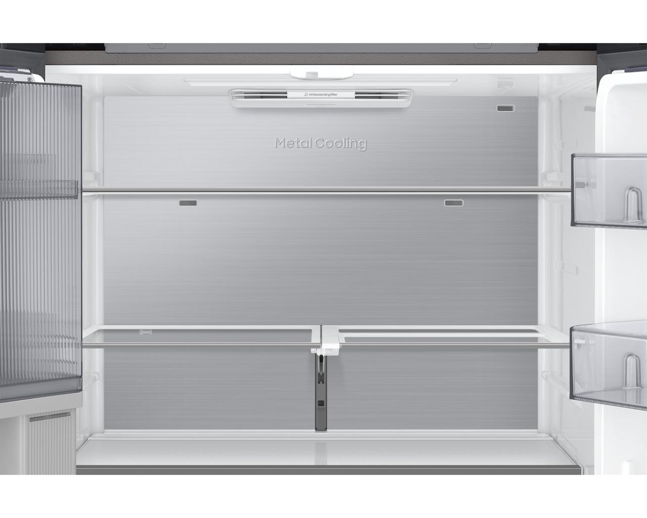 Холодильник Samsung RF9000DC — это вместительное и технологичное решение для большой семьи, выполненное в формате French Door (четыре двери). Общий объем 676 литров, разделенный на три независимые камеры, позволяет организовать хранение продуктов с максимальным комфортом. Модель оснащена инверторным компрессором, полной системой No Frost в обеих камерах, встроенным ледогенератором и интеллектуальным управлением через Wi-Fi. Стильный белый корпус со стеклянными дверями и внутренними ручками гармонично впишется в современный интерьер просторной кухни.