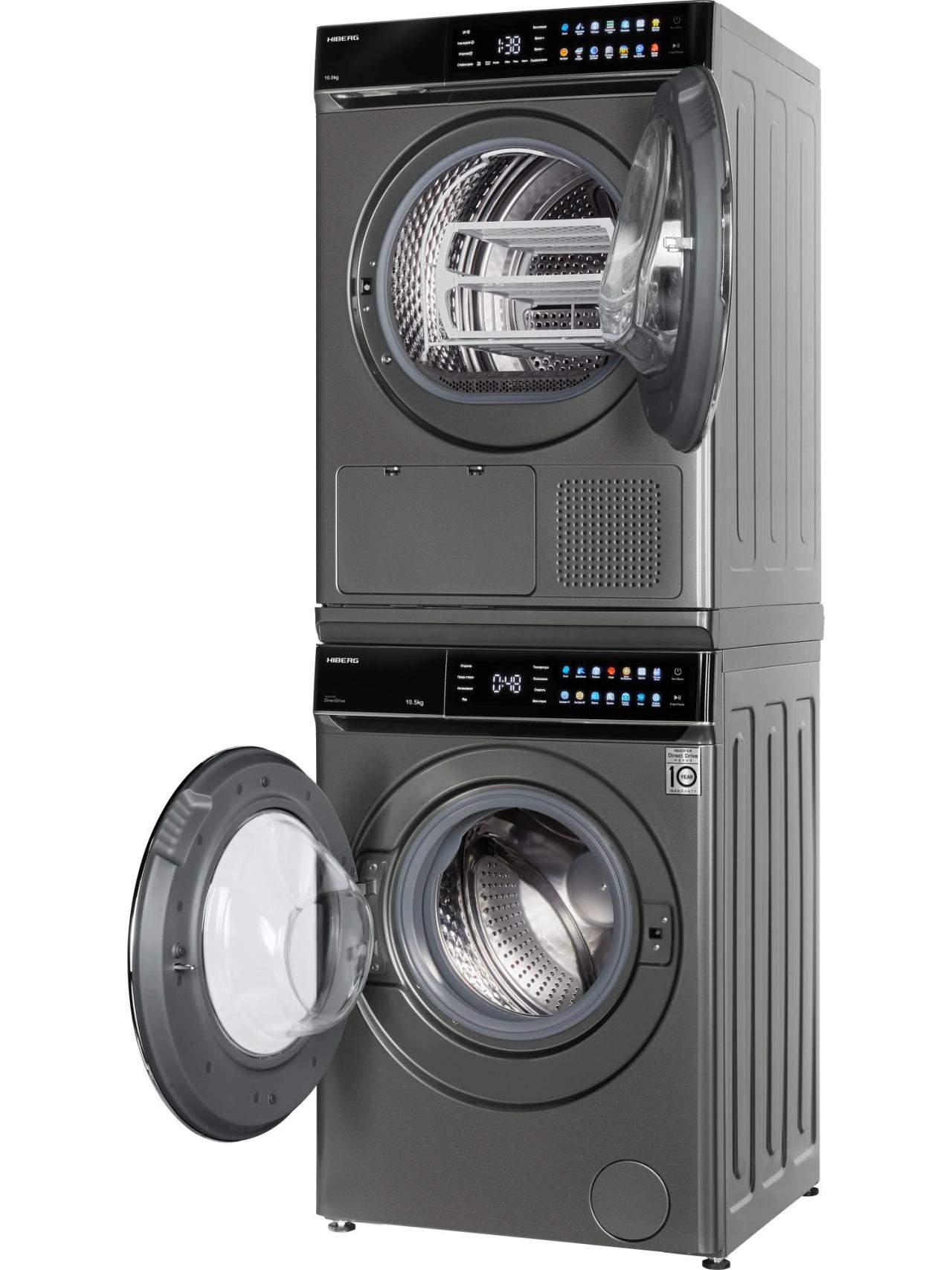 Комбинация HIBERG сушильная машина HDQ11 10 Sd + стиральная машина i-DDQ11 1014 Sd + соединительный элемент RU