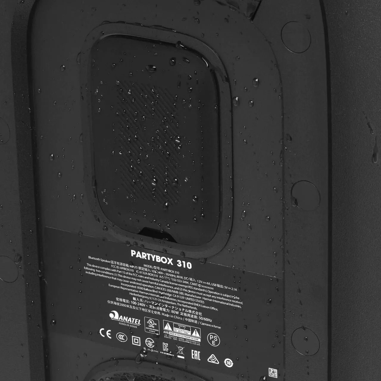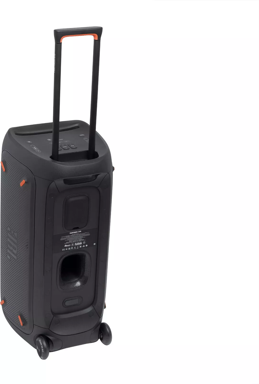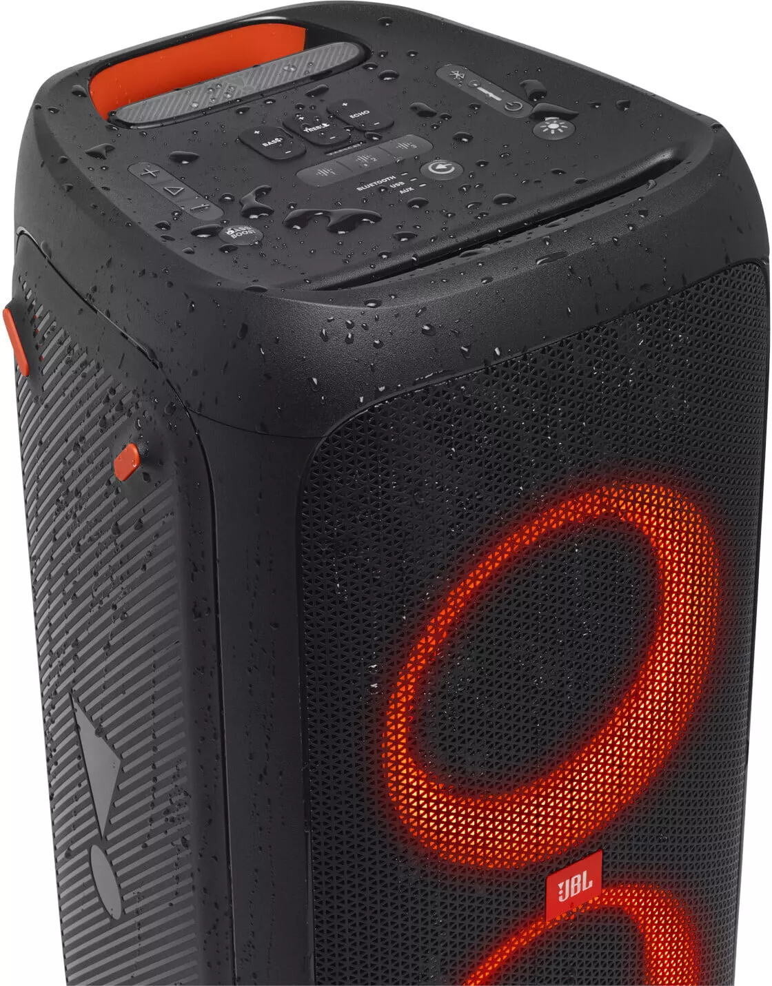 JBL PartyBox 310 позволяет организовать вечеринку в переносном формате - барбекю на заднем дворе, пляжную вечеринку и в других местах. Телескопическая ручка, встроенные мягкие колесики и влагозащищенная конструкция, защищенная по стандарту IPX4, благодаря которой динамик готов к работе в любом месте, в дождь или в солнечную погоду. PartyBox 310: вечеринка может быть перенесена на совершенно новый уровень. Динамик совместим с большинством подставок для колонок, а поднятие динамика в воздух улучшит воспроизведение звука, как показано на рисунке. Кроме того, динамик оснащен аудиовходами для микрофона и гитары, так что вы можете организовать караоке-вечеринку или собраться с друзьями. Встроенная настройка вокалиста обеспечивает действительно отличный звук.