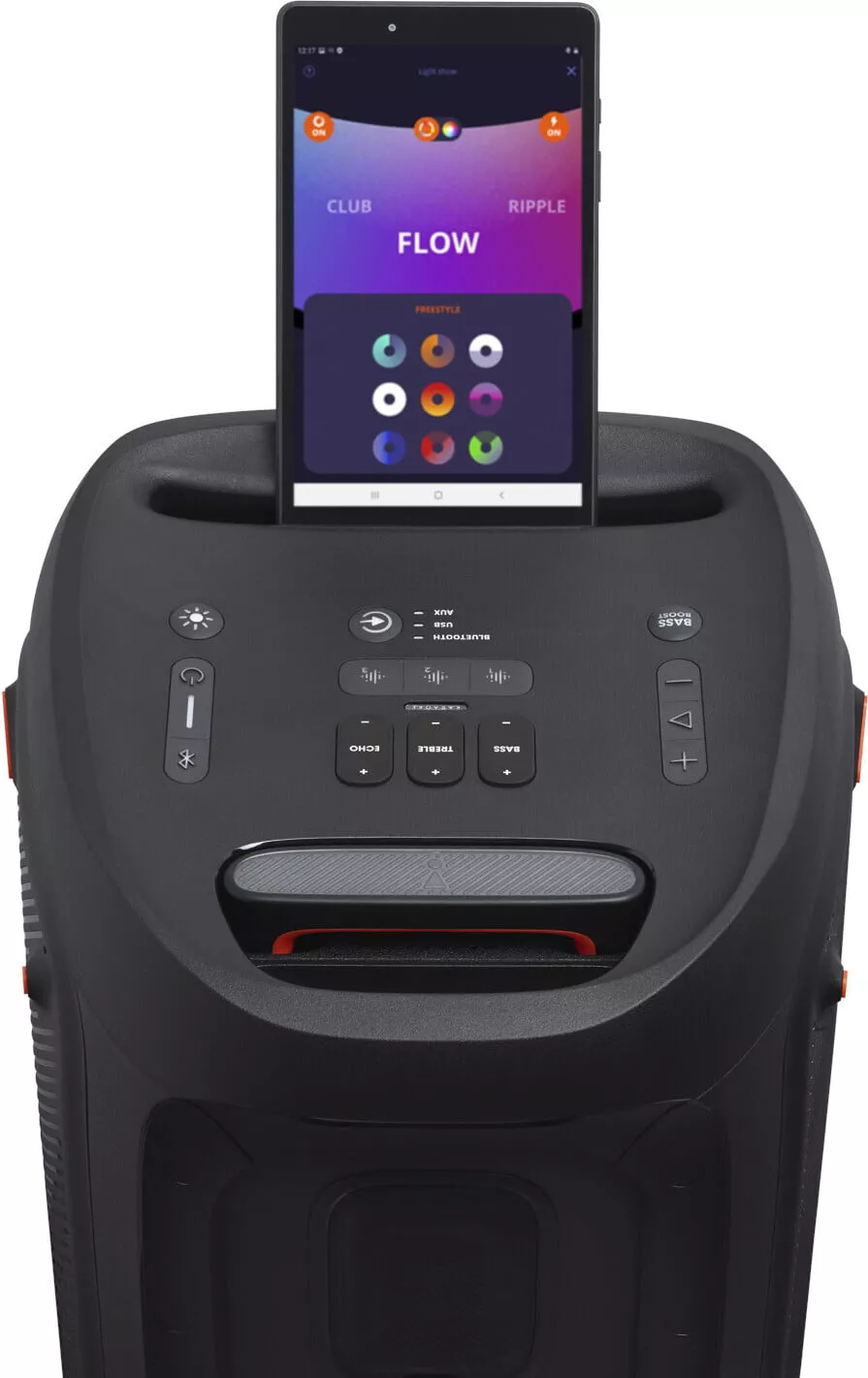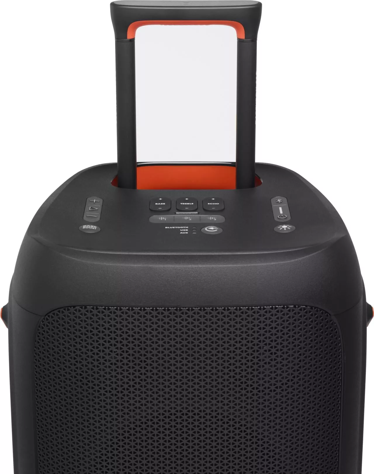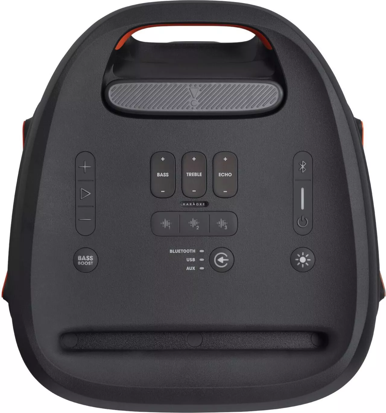JBL PartyBox 310 позволяет организовать вечеринку в переносном формате - барбекю на заднем дворе, пляжную вечеринку и в других местах. Телескопическая ручка, встроенные мягкие колесики и влагозащищенная конструкция, защищенная по стандарту IPX4, благодаря которой динамик готов к работе в любом месте, в дождь или в солнечную погоду. PartyBox 310: вечеринка может быть перенесена на совершенно новый уровень. Динамик совместим с большинством подставок для колонок, а поднятие динамика в воздух улучшит воспроизведение звука, как показано на рисунке. Кроме того, динамик оснащен аудиовходами для микрофона и гитары, так что вы можете организовать караоке-вечеринку или собраться с друзьями. Встроенная настройка вокалиста обеспечивает действительно отличный звук.