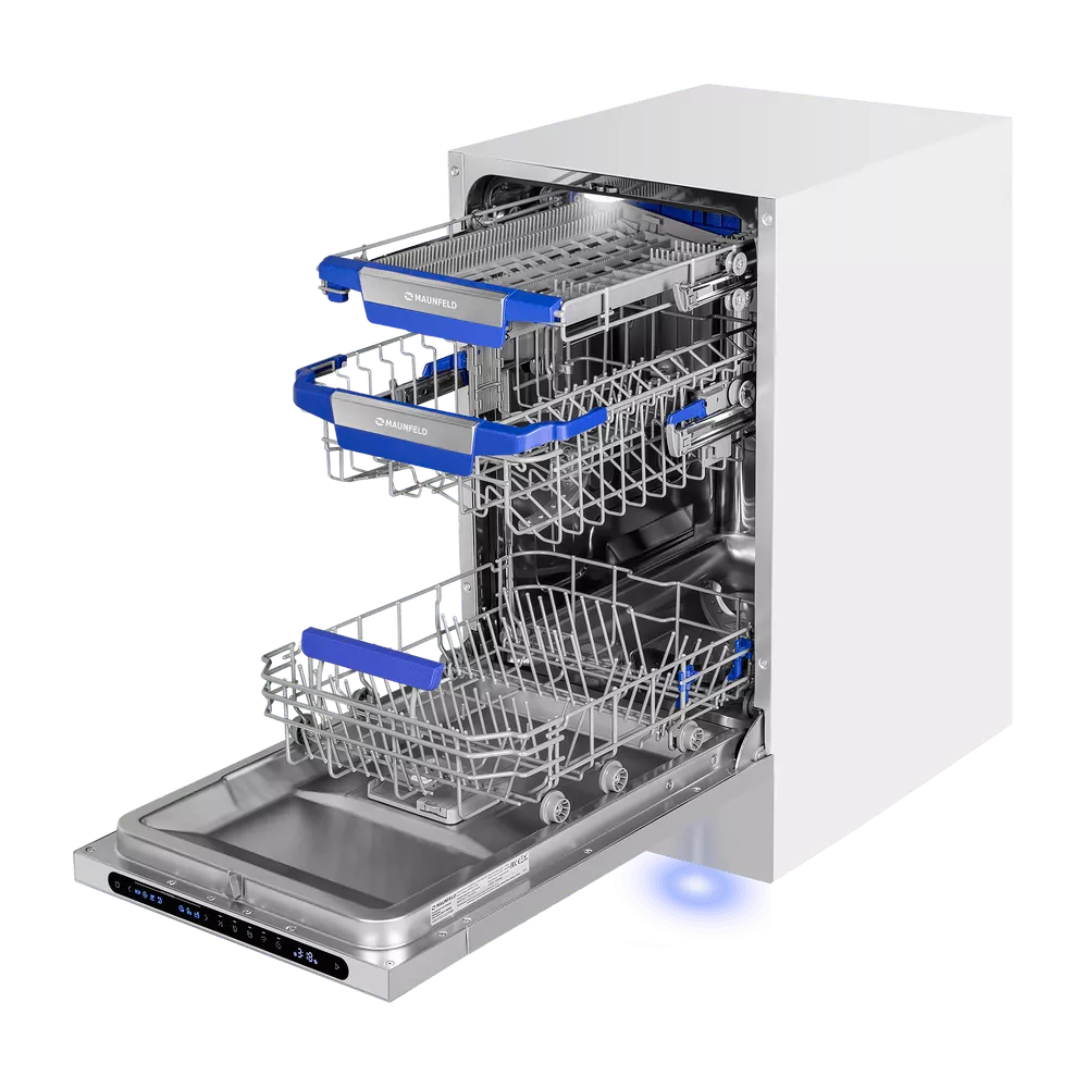 Посудомоечная машина MAUNFELD MLP45331T Light Beam Wi-Fi — удачное решение для кухни, где важно сохранить пространство: узкий формат с ширина 45 см позволяет встроить технику даже в компактный гарнитур без компромиссов по возможностям. При этом модель остаётся по-семейному практичной: вмещает до 10 комплектов посуды — удобно как для ежедневного цикла, так и после приёма гостей.