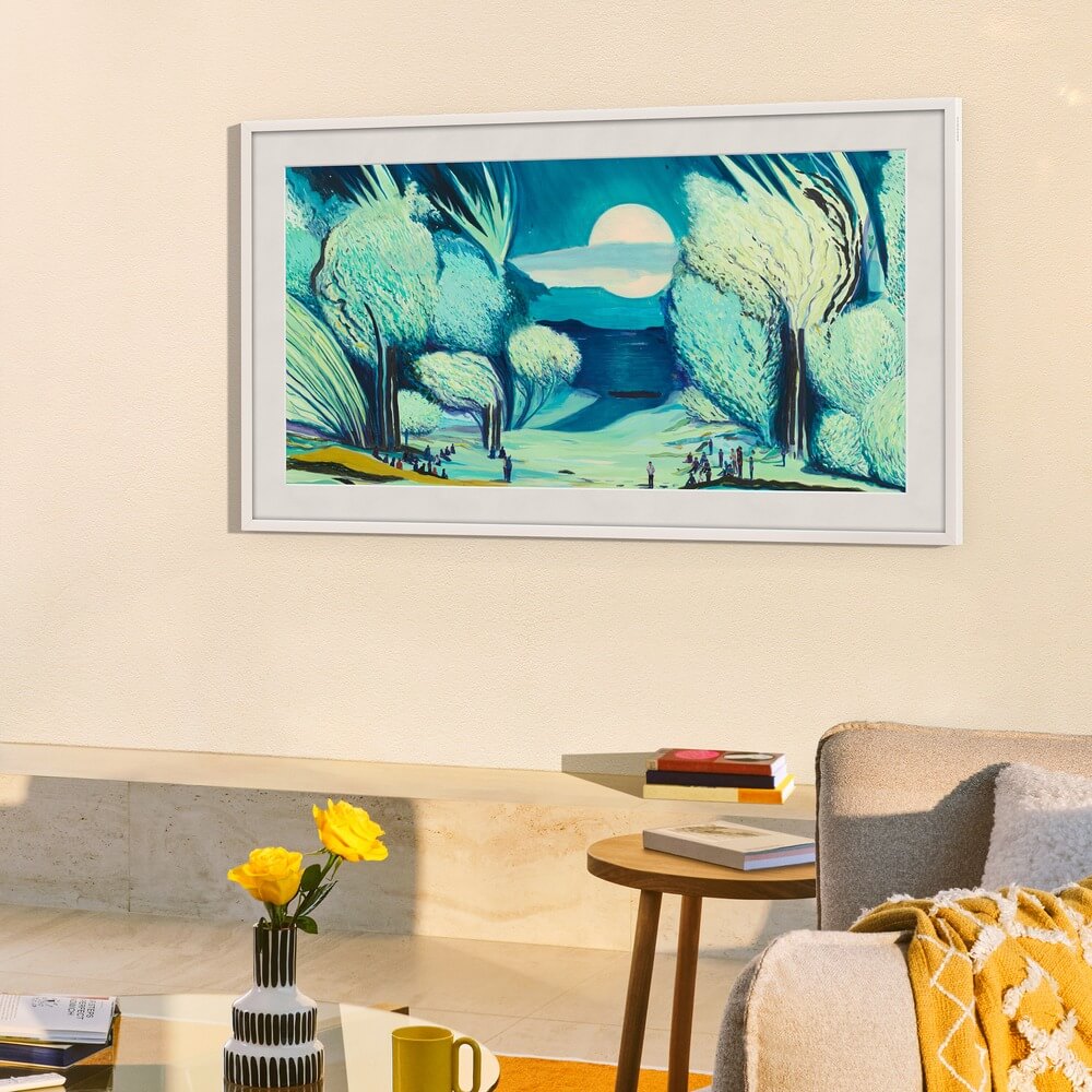 75-дюймовый Samsung The Frame – это уникальное сочетание передовых технологий и эстетики. Когда телевизор выключен, он превращается в стильное произведение искусства из коллекции Samsung Art Store или