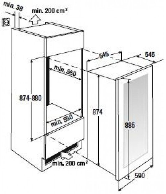Размер ниши для встраивания (В×Ш×Г): 87.8 × 56 × 55 см