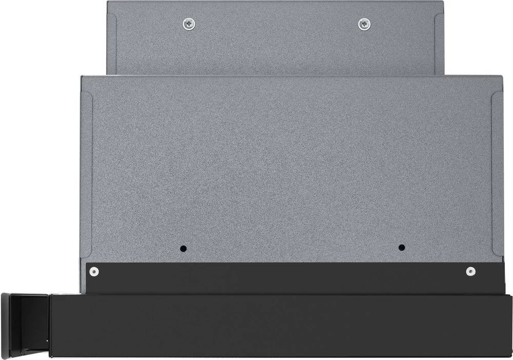 Особенностью данной модели является наличие выдвижной панели, что увеличивает эффективность работы и облегчает управление устройством. Управление осуществляется с помощью сенсорных переключателей. При этом доступно 4 скорости работы, что позволяет подбирать оптимальный режим в зависимости от интенсивности приготовления пищи.